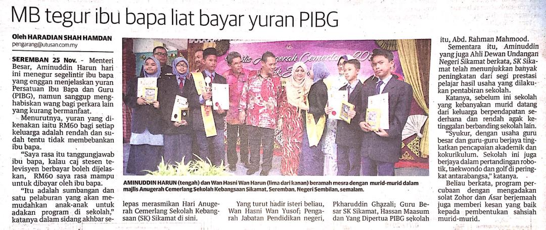 Tajuk :MB tegur ibu bapa liat bayar yuran PIBG