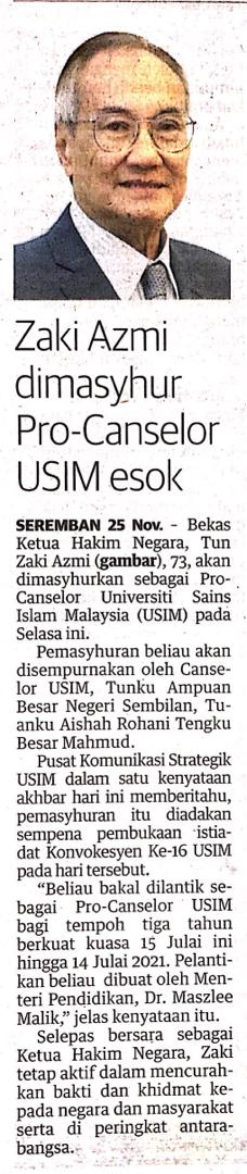 Tajuk :Zaki Azmi dimasyhur Pro-Canselor USIM esok