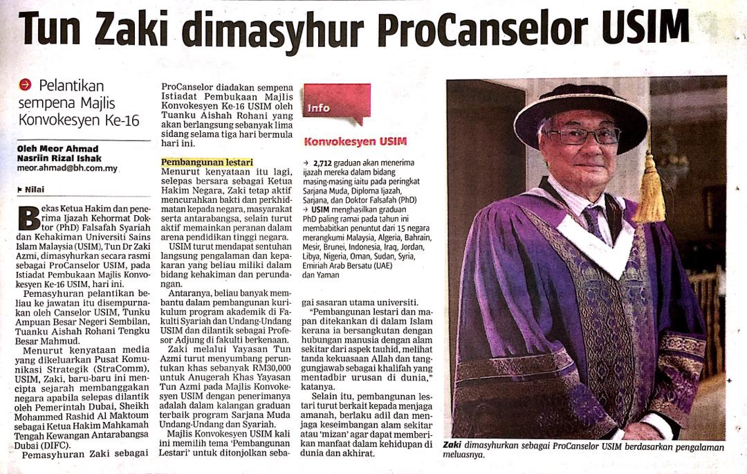 Tajuk :Tun Zaki dimasyhur ProCanselor USIM