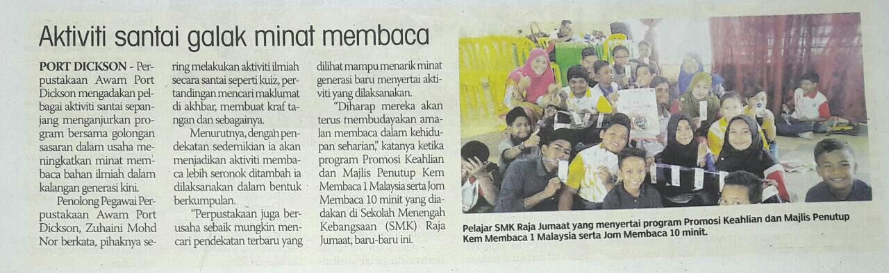 Tajuk :Majlis Pelancaran Jom Baca Bersama Untuk 10 Minit Dan Kem Membaca 1Malaysia (KM1M) peringkat Negeri Sembilan 2016 .