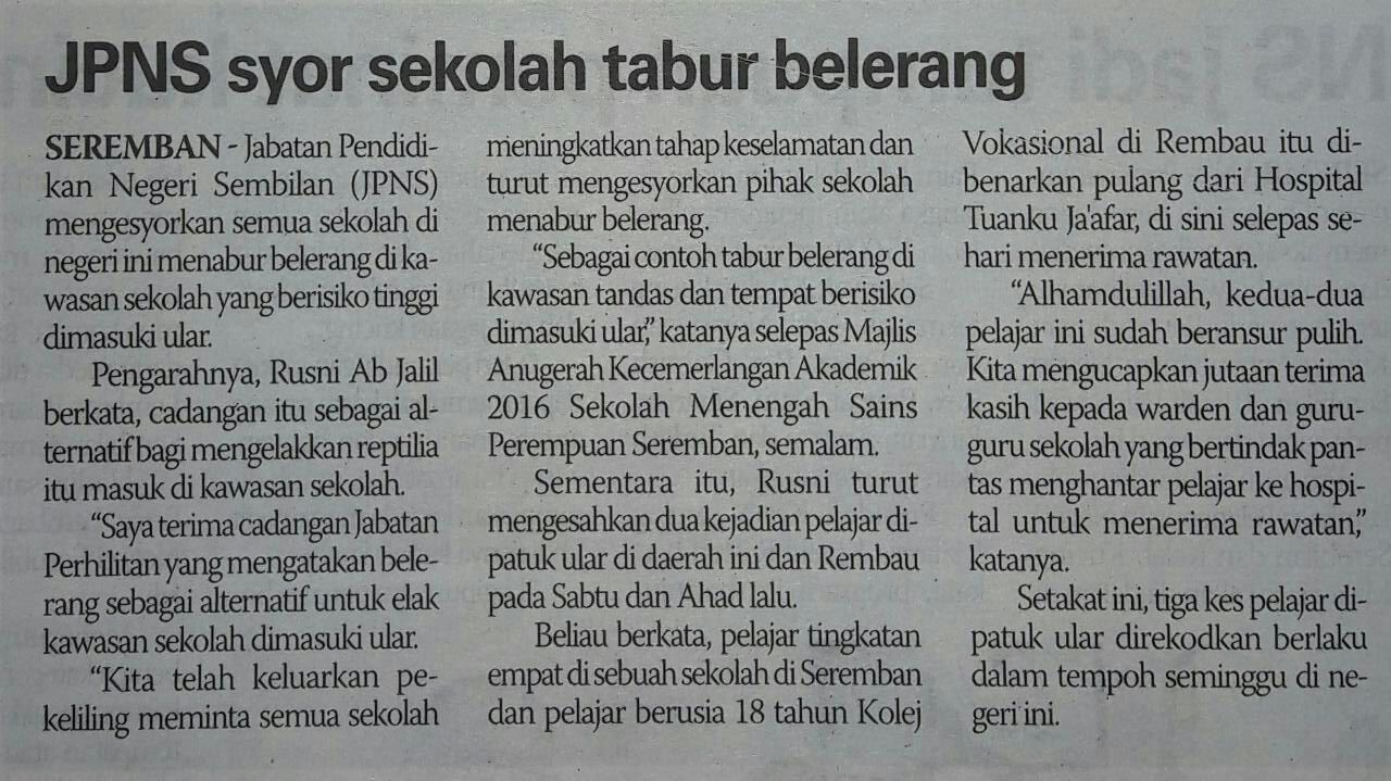 Tajuk :JPNS syor sekolah tabur belerang