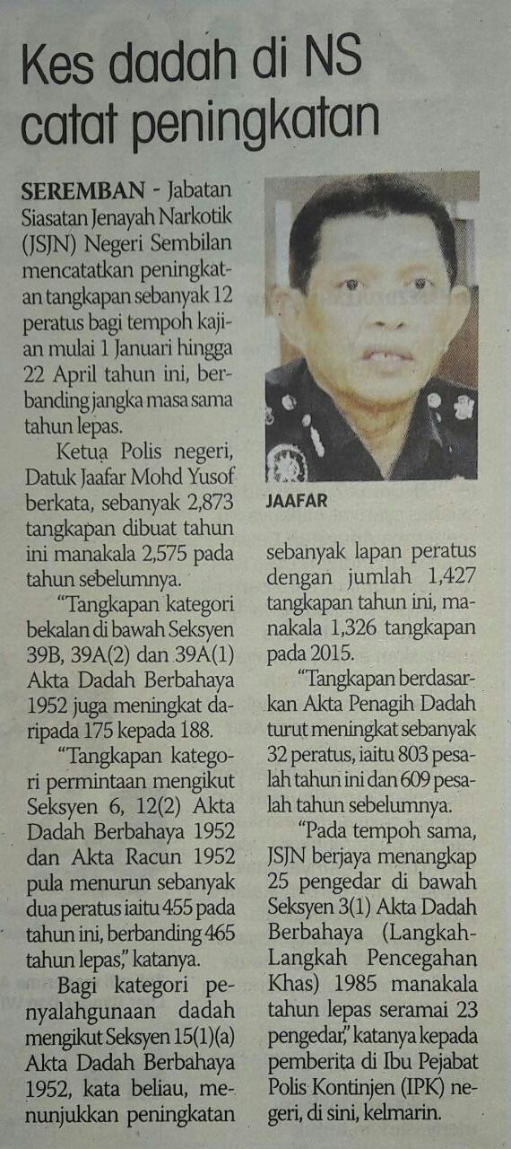 Tajuk : Kes dadah di NS catat peningkatan